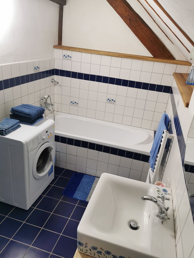 Naši hosté se mohou ubytovat v samostatně stojícím ,,vejminku“ a využívat dle libosti i dvůr s dětským koutkem. Přírodní zahrada je Vám během pobytu plně k dispozici. Ubytování v našem selském stavení se starožitným nábytkem a ručně vyráběnými kousky připomíná prázdniny u babičky. K dispozici je ložnice se 4mi lůžky a přistýlka nebo dětská postýlka, plně vybavená kuchyň, nejen s plynovým sporákem, ale i s klasickou pecí na dřevo a koupelna s pračkou a vanou. Ubytování poskytujeme celoročně na libovolný počet dnů. WIFI FREE