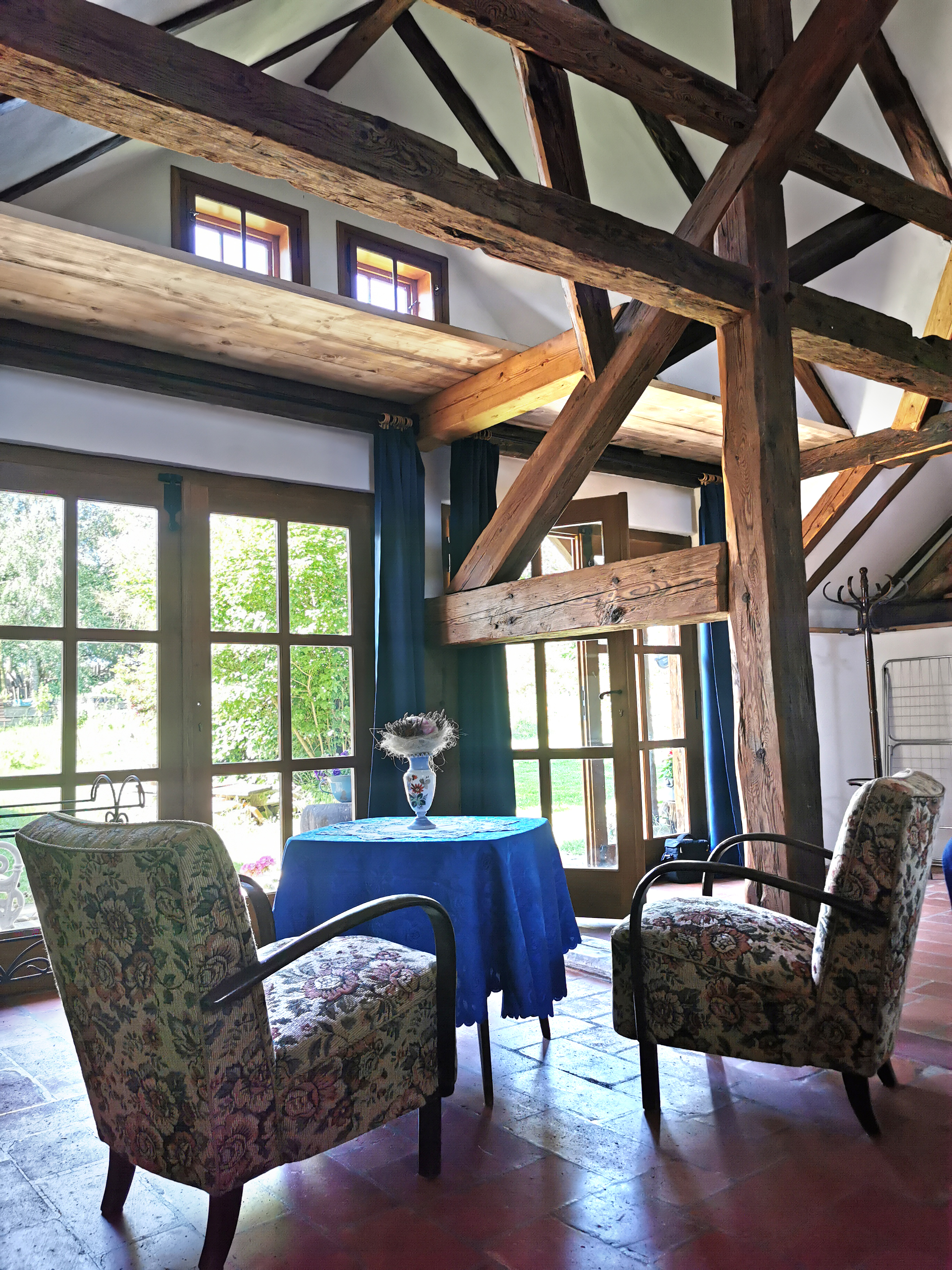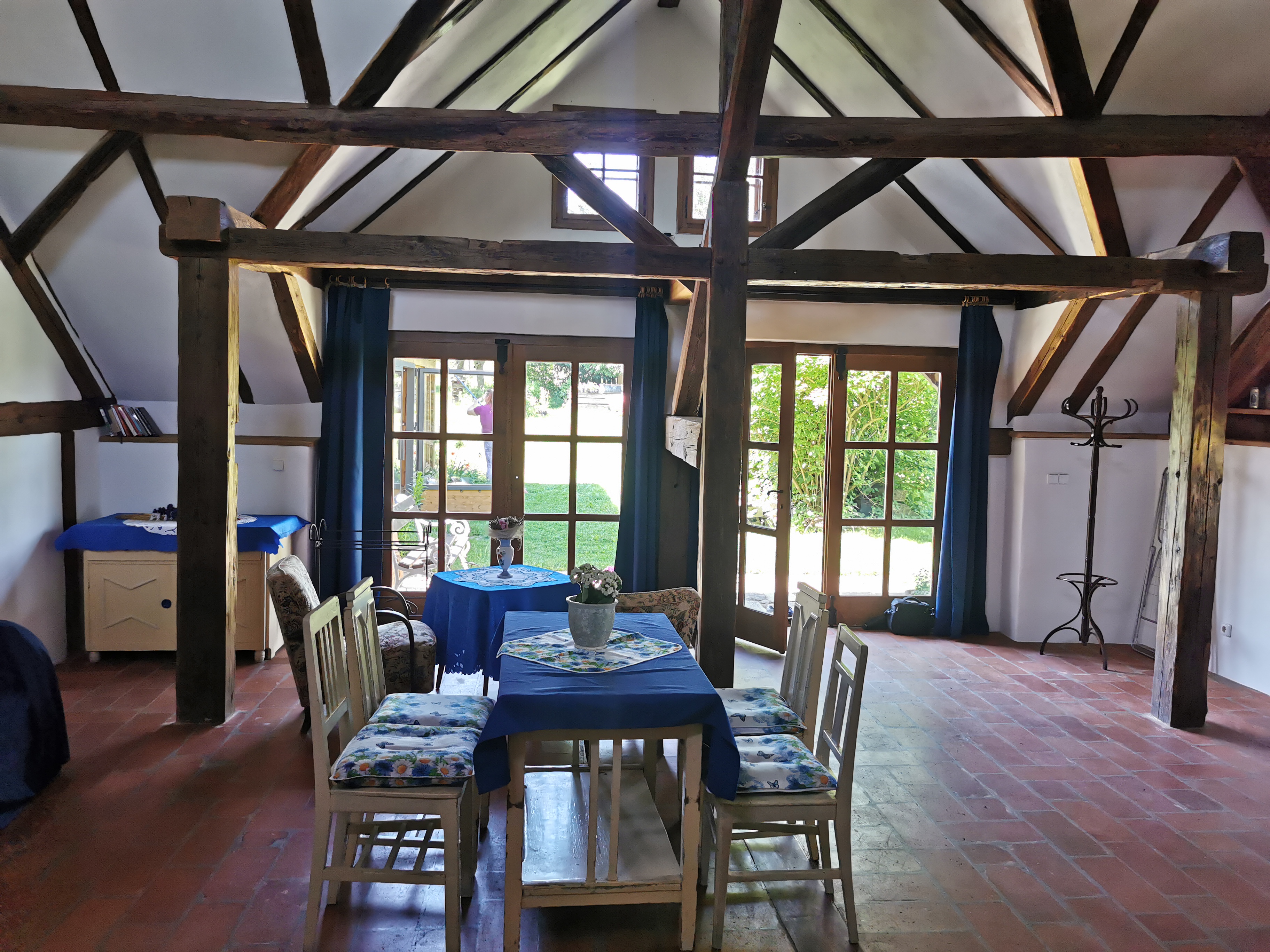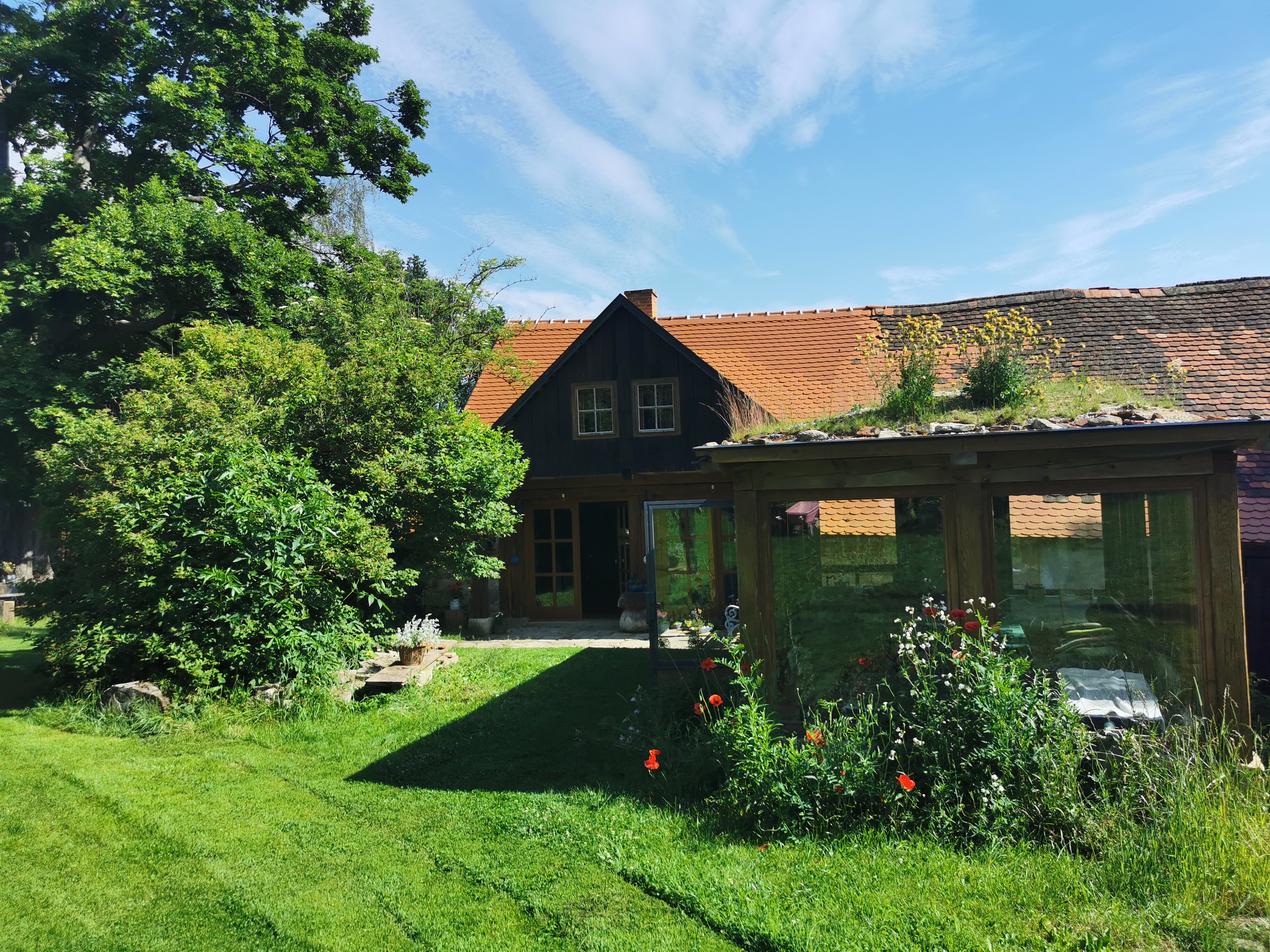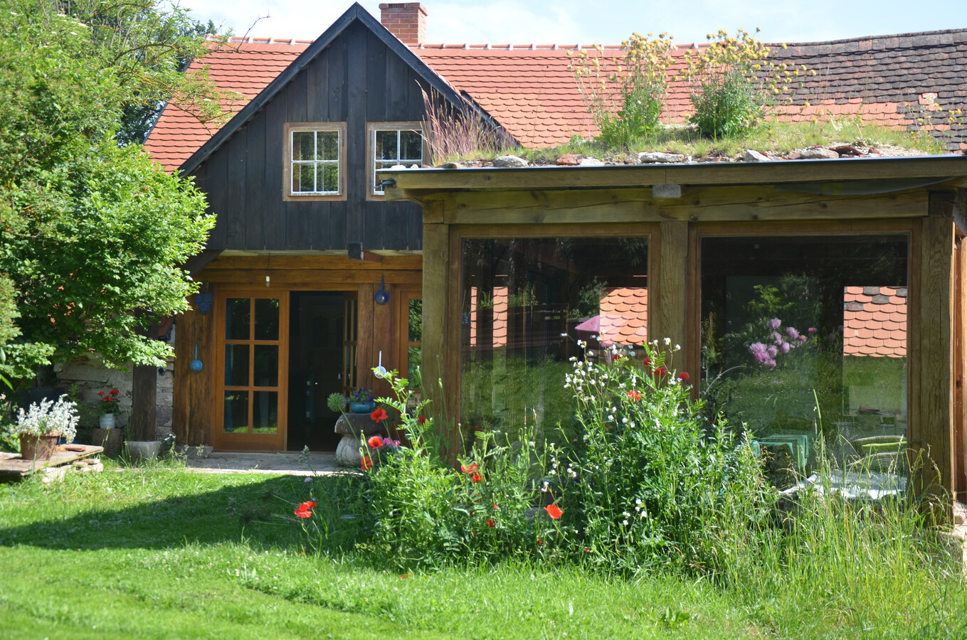 K dispozici jsou prostory pro ubytování, zimní zahrada, 5 ha přírodní zahrada, ohniště, venkovní posezení.