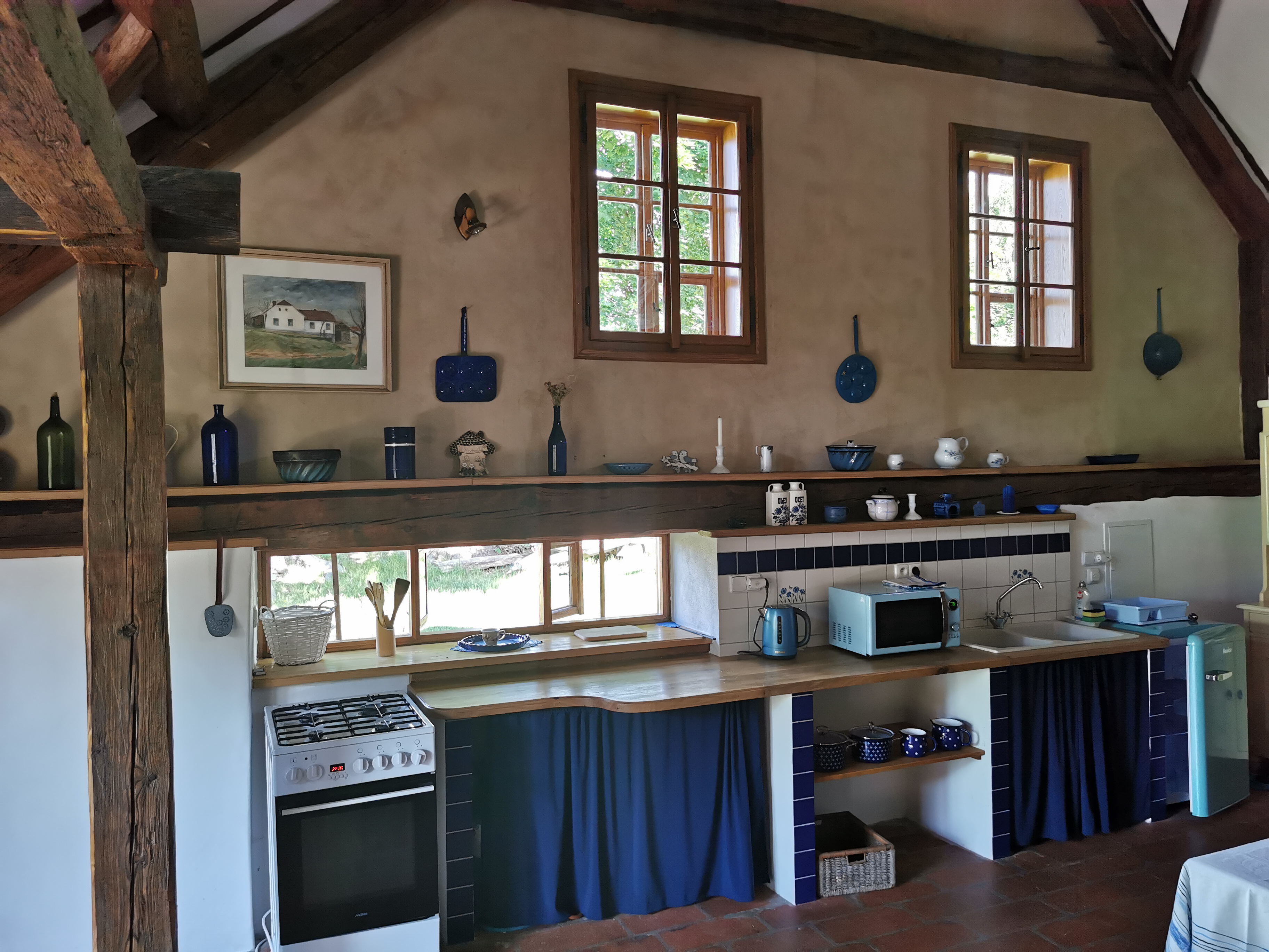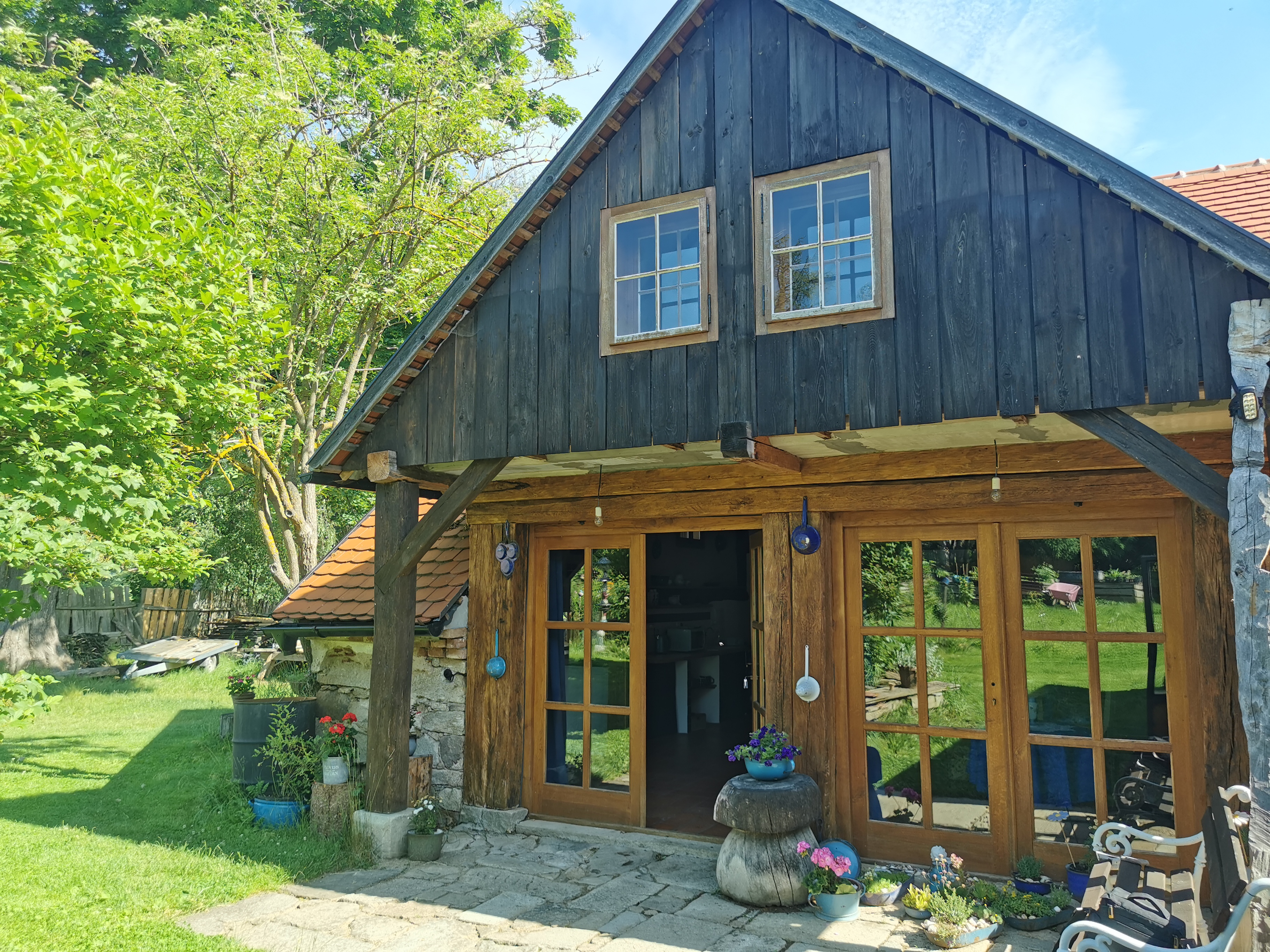 Je stylově zařízený prostorný objekt pro 5–6 osob s výhledem na rozlehlou přírodní zahradu. K dispozici je koupelna s vanou a pračkou. Kuchyň je vybavena sporákem, ledničkou, mikrovlnnou troubou a rychlovarnou konvicí. K odpočinku máte nejen naši přírodní zahradu, ale i venkovní a vnitřní posezení a zahradní prvky pro vyžití dětí. WI-FI free.